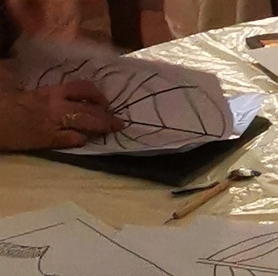Ripassare una prima volta il disegno con la penna bic, la cui punta arrotondata è ideale per imprimere una prima volta la lamina. Riportare in questo modo tutto il disegno.